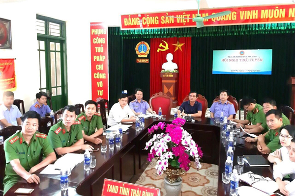 Liên ngành Viện kiểm sát - Tòa án nhân dân tỉnh Thái Bình phối hợp tổ chức phiên tòa truyền hình trực tuyến rút kinh nghiệm hai cấp